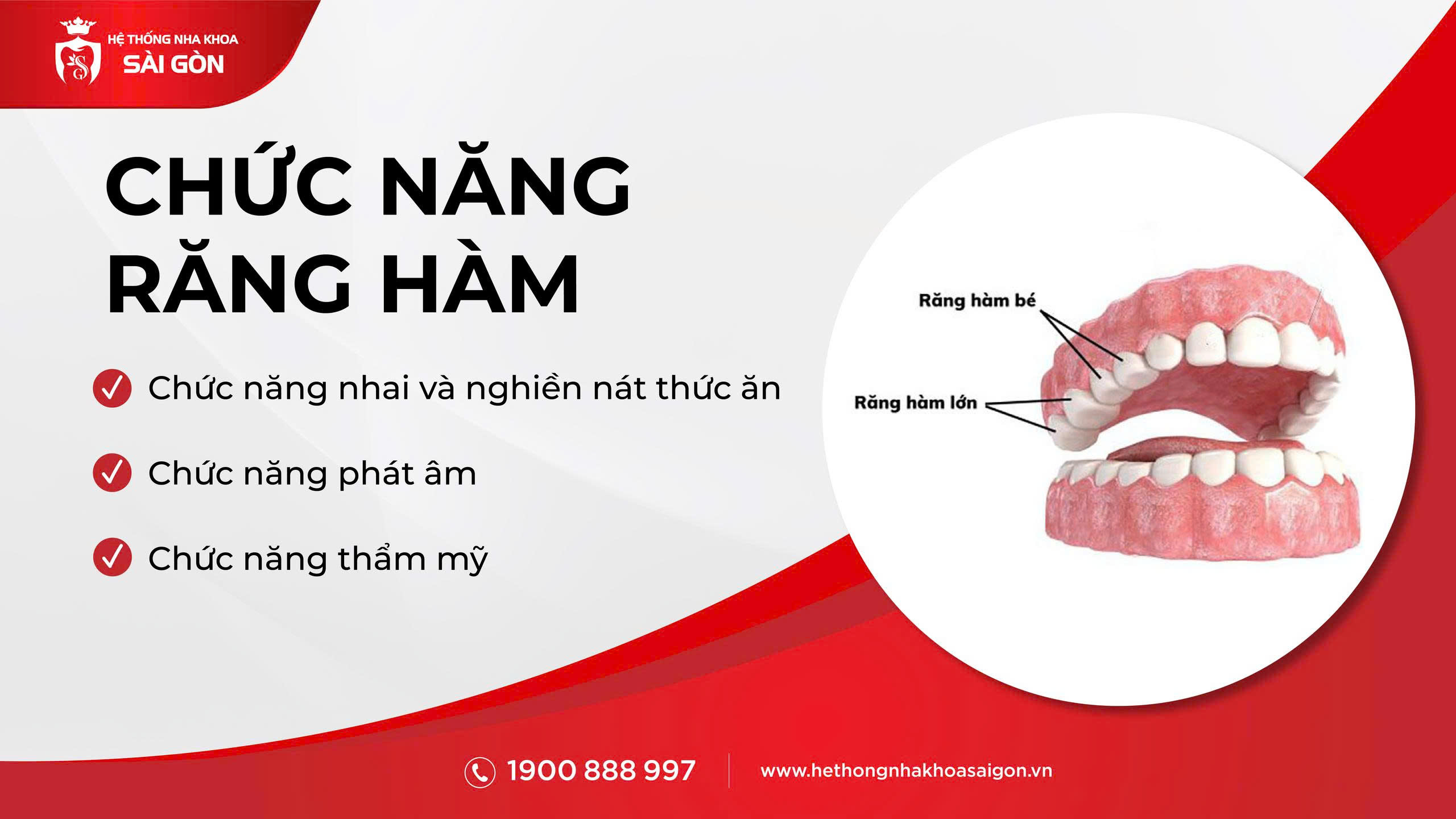 Tại Hệ Thống Nha Khoa Sài Gòn, chúng tôi luôn khuyến khích khách hàng chăm sóc răng hàm như chăm sóc “gốc rễ” của nụ cười. Bởi răng hàm không chỉ giữ vai trò nhai thức ăn mà còn ảnh hưởng trực tiếp đến sức khỏe răng miệng tổng thể.